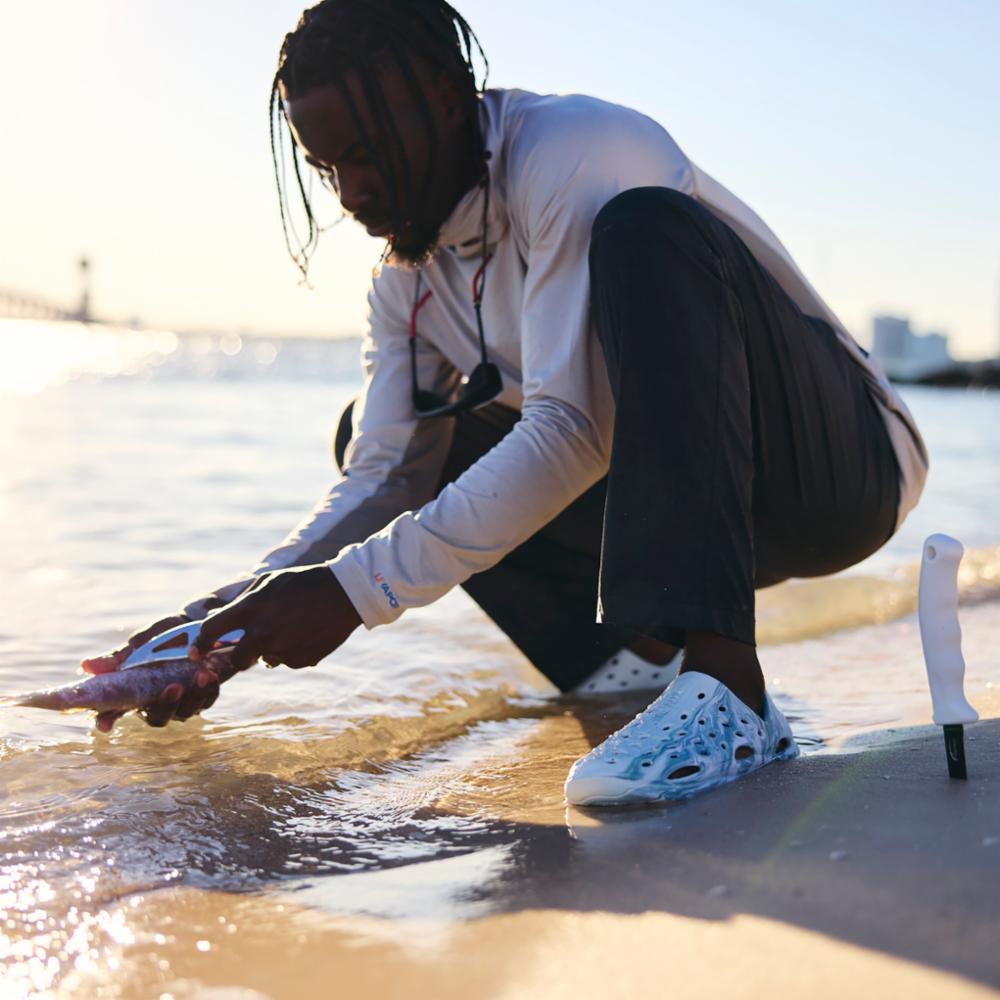 La chaussure antidérapante Riptide est fabriquée en BioLite, une nouvelle mousse haute performance et un matériau respectueux de l'environnement qui offre une absorption des chocs et un soutien supérieurs.