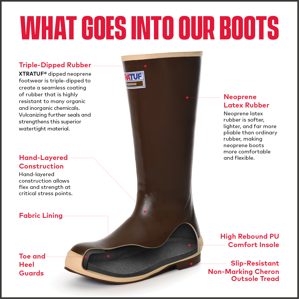Les bottes XTRATUF qu'ils portent se révèlent un PARTENAIRE FIABLE contre vents et marées, gardant plusieurs générations en sécurité, au sec et en avançant, une étape sûre à la fois.